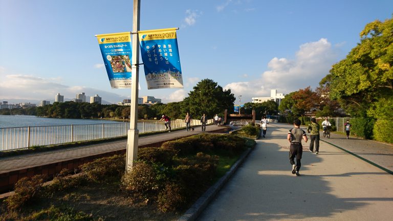 今回の宿泊は、どこも博多駅起点なので、博多駅の近くがベストだったのだが、3連休と日本シリーズなどの影響から空室がほとんどなかったので、仕方なく博多駅から離れている、大濠公園近くのホテルに宿泊する事になった。大濠公園の事は知らなかったのだが、ネット等の評判を見ると、ジョギングには最適と書かれていたので、一応、準備していって、朝、旅ジョグしてみたのだが、今まで走った公園では、ジョギングという点ではベストといえるくらいの、素晴らしい公園だった。