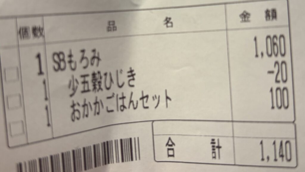 五穀米少なめに、おかかごはんセットの追加である。五穀米はGI値が低く、少なめにする事で、ダイエット効果は高い。そして、最大の発見が追加オプションの「おかかごはんセット」。