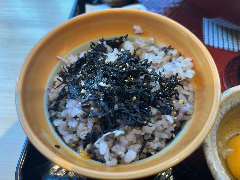 まずひじきご飯で、五穀米を半分ほど食べる。