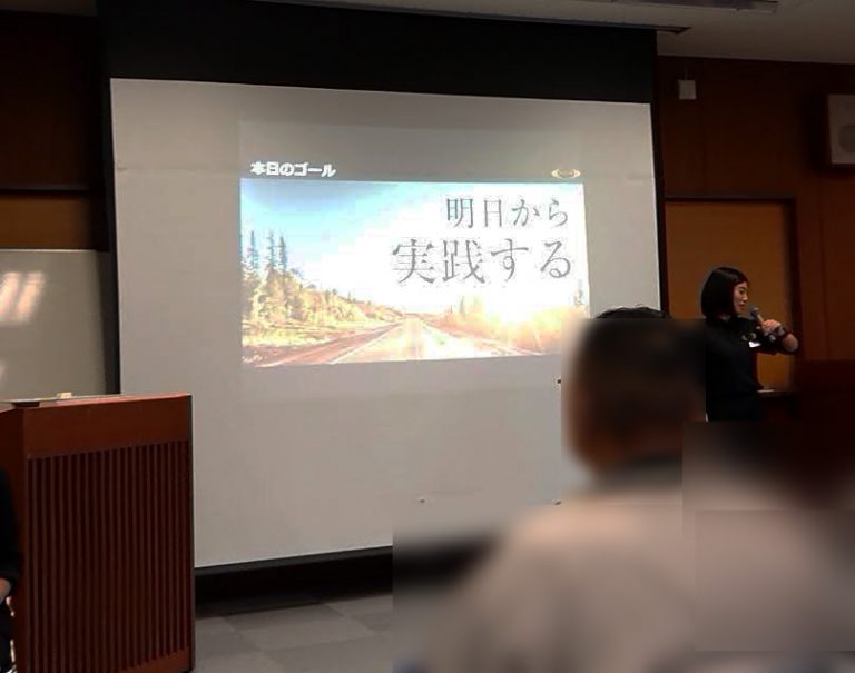 今回のプログラムだが、回数も少なく、集団なので、どちらかといえば、 トレーニングというよりも、メソッドの 伝授が中心。スライドでの説明や、トレーニング方法の実践をしながら、RIZAP メソッドを学んでいくスタイルであった。