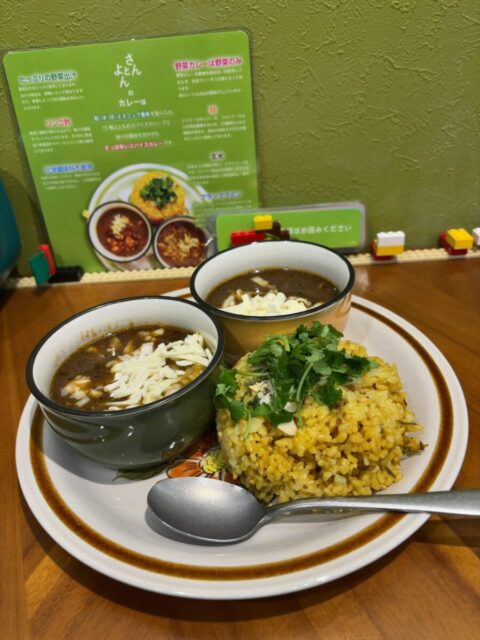 食べてみた第一印象は、札幌スープカレー風で、病みつきになる味でした。あいがけ(1,200円)は、野菜と肉の2種類のカレーが食べられ、飽きません。チーズやパクチーのトッピングやライス大盛が無料なのも嬉しいです。