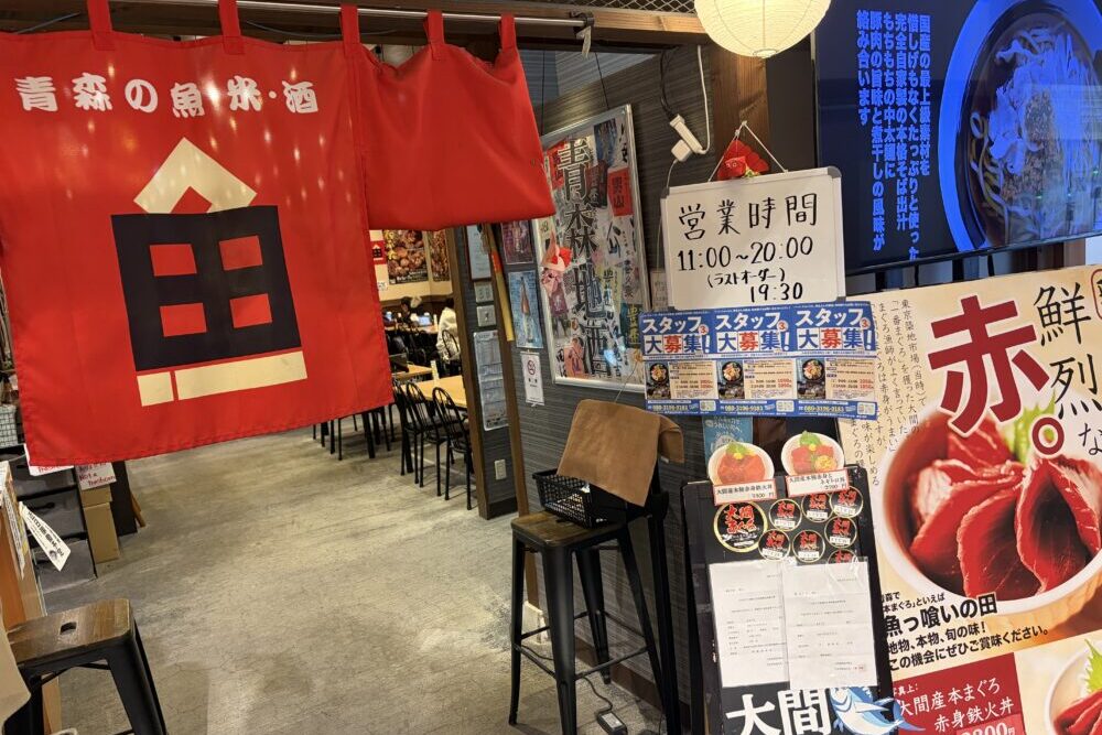 14:48の新幹線で新青森へ。 乗り換えの48分間で「魚っ喰いの田」へ。店内で食べるには時間ギリギリだったので、海鮮丼をテイクアウトに。新幹線での長い帰り道、手頃で美味しい海鮮丼を味わいながら旅を締めくくる。