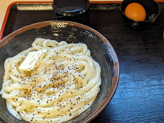 30人前後の行列だったが、うどん屋なので、せいぜい2~30分待ちかと思ったら、なんと、着席まで2時間。名物の釜バターうどんは、柔らかめのカルボナーラという感じで、悪くはないが、待ち時間を考えると微妙。