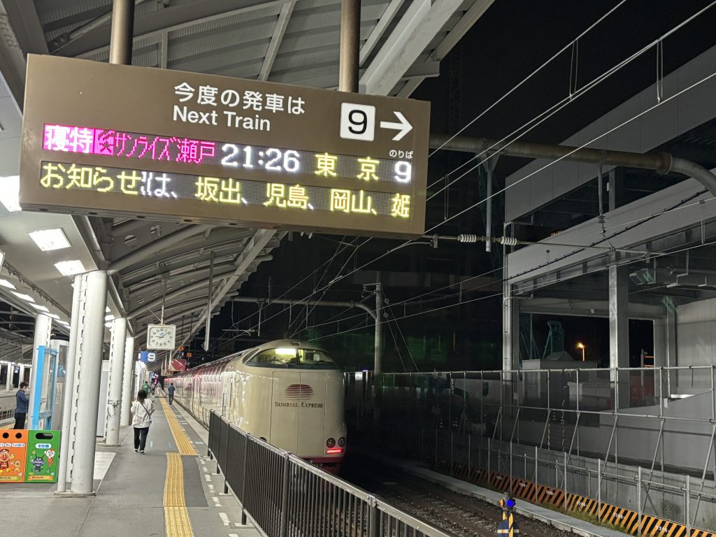 今回の旅の最後は夜行特急サンライズ瀬戸。人気があるので発売日に購入済。