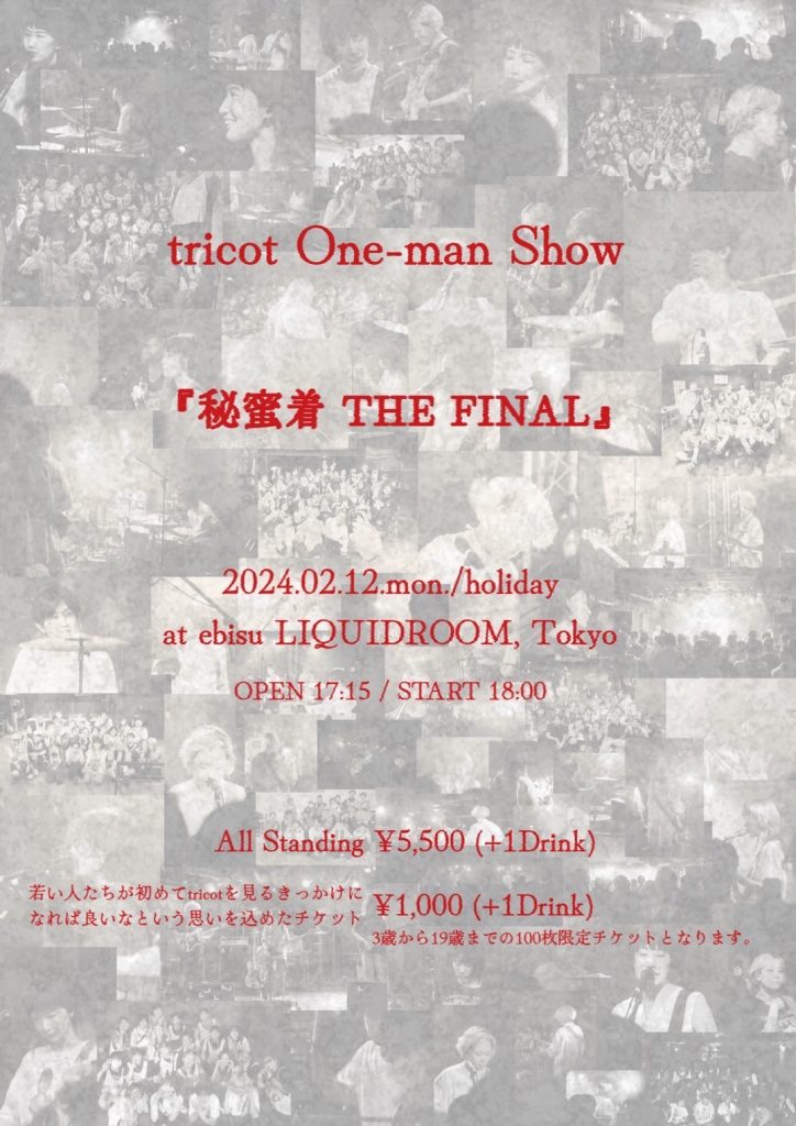 このライブは1000円チケット(19歳以下100枚限定)も発売される。せっかくのチャンスなので、初めて娘を連れて行く事にした。ちなみに娘は2010年9月1日生まれ。(tricotと同じ年・誕生日)