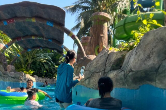ウォーターパークはまるでハワイのアウラニ・リゾートのよう。スライダーに波のプール、そしてなんと流れるプールまで完備!水着を忘れずに持っていきましょう。